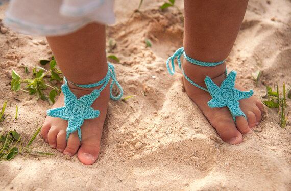 Aqua Starfish Crochet Baby Barefoot Sandals,